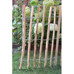 Prírodný lieskový plot z lúpaných lieskových prútov je ideálny na ohraničenie záhonov, kríkov alebo ako opora pre popínavé rastliny. Ručná výroba, 100 % prírodný materiál a originálny vzhľad dodajú vašej záhrade jedinečný charakter. Hustota plotu: 7-9 cm
