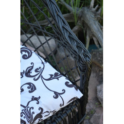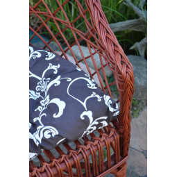 Kreslo do záhrady z prírodného prútia s hnedou poduškou so vzorom