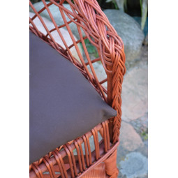 Kreslo do záhrady z prírodného prútia s hnedou poduškou