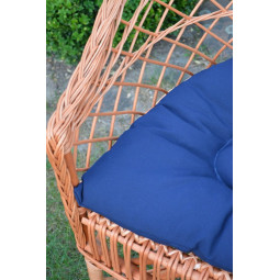 Záhradné kreslo z prírodného prútia s modrým vankúšom