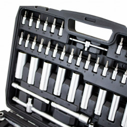 Táto 94-dielna súprava náradia prémiovej kvality je ideálna pre domácich majstrov alebo pokročilejších používateľov. Nástroje sú vyrobené z chróm-vanádiovej nástrojovej ocele, ktorá sa vyznačuje vysokou pevnosťou a odolnosťou.