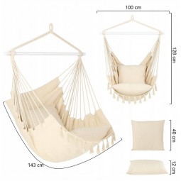 Záhradné závesné kreslo s dvoma vankúšmi v béžovej farbe