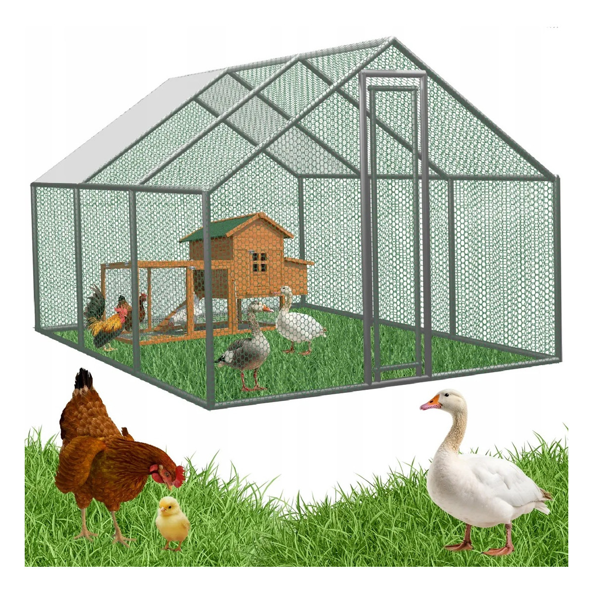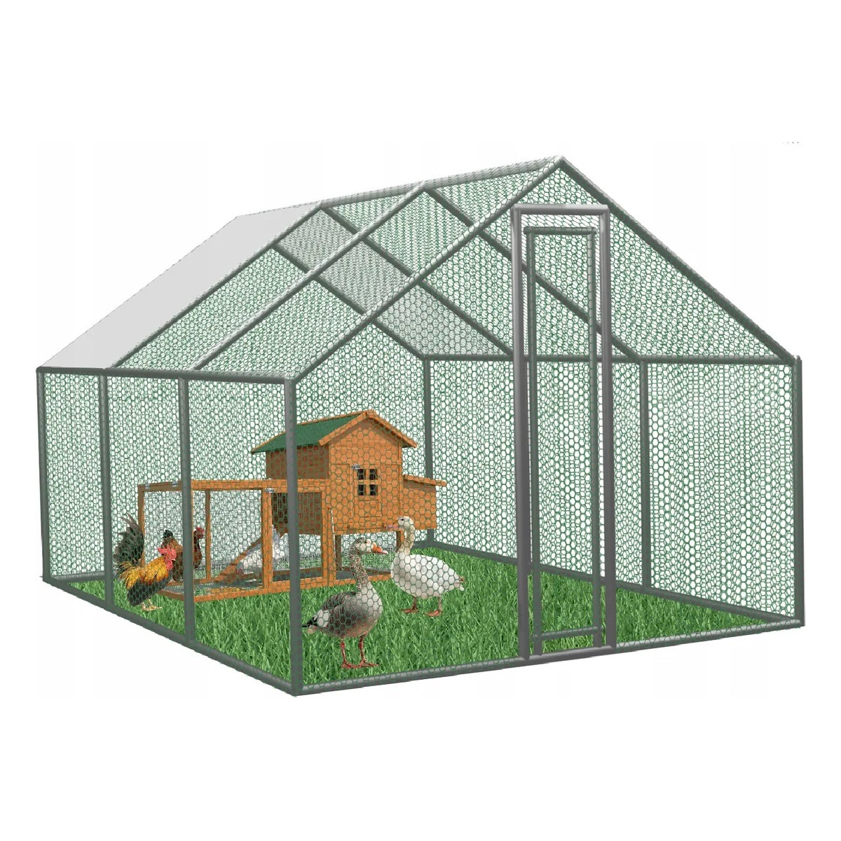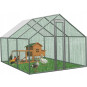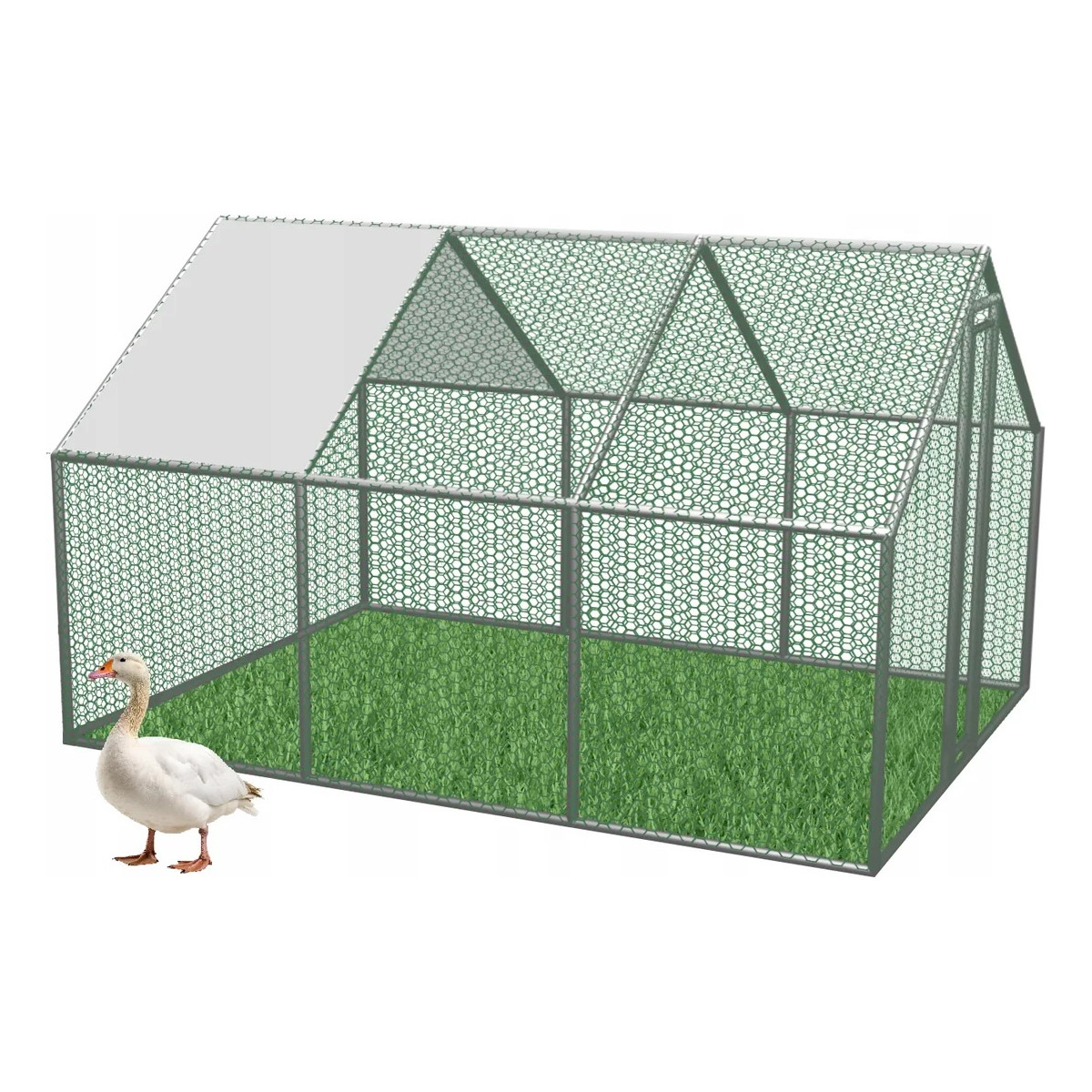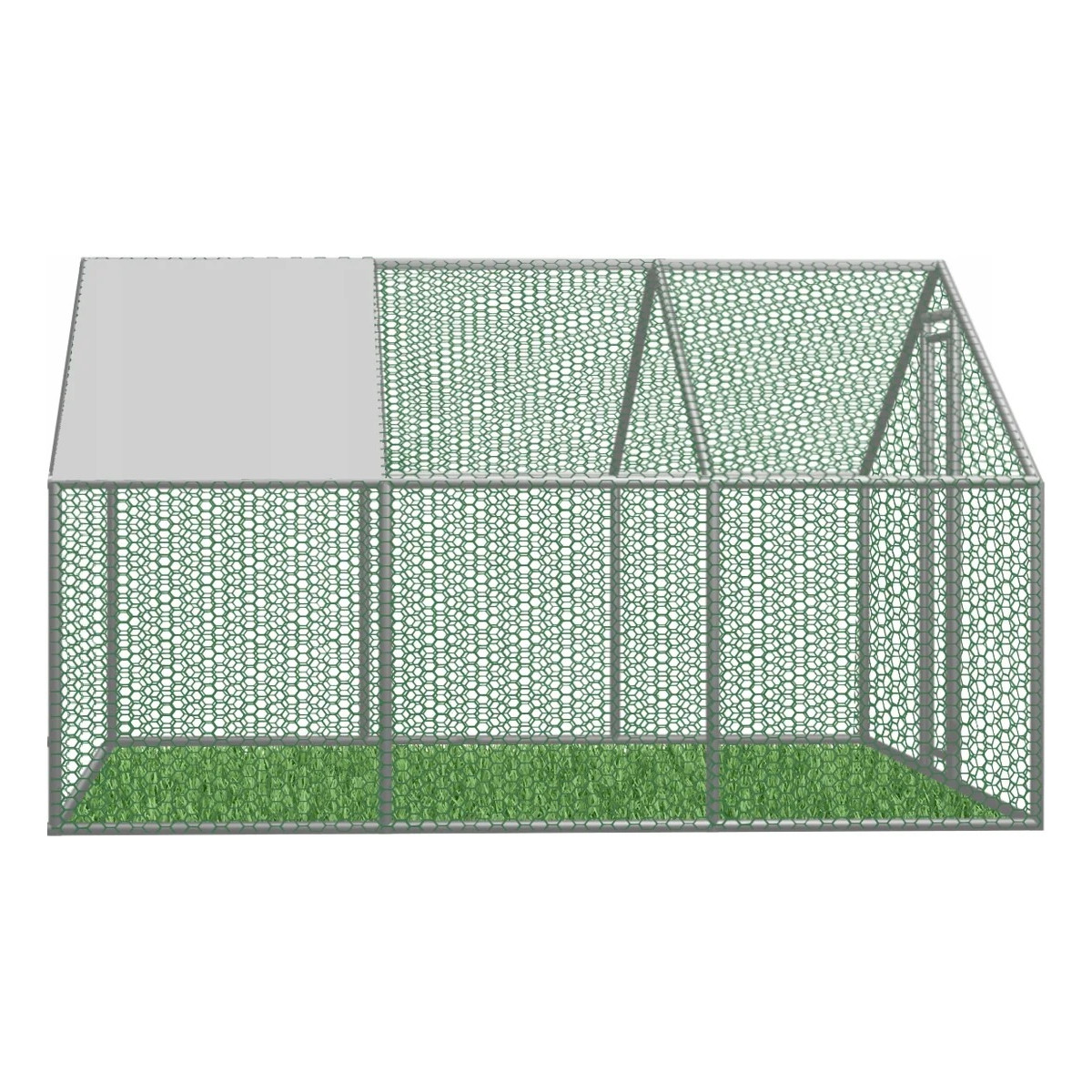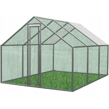 Kovová voliera pre sliepky, králiky a malé zvieratá s rozmermi 4,5 × 3 × 1,95 m ponúka bezpečný a priestranný vonkajší výbeh. Pevná konštrukcia z pozinkovanej ocele, bočná kovová sieť a čiastočné zastrešenie zabezpečujú ochranu pred počasím aj predátormi. Vhodná na celoročné použitie, s jednoduchou montážou a dlhou životnosťou.