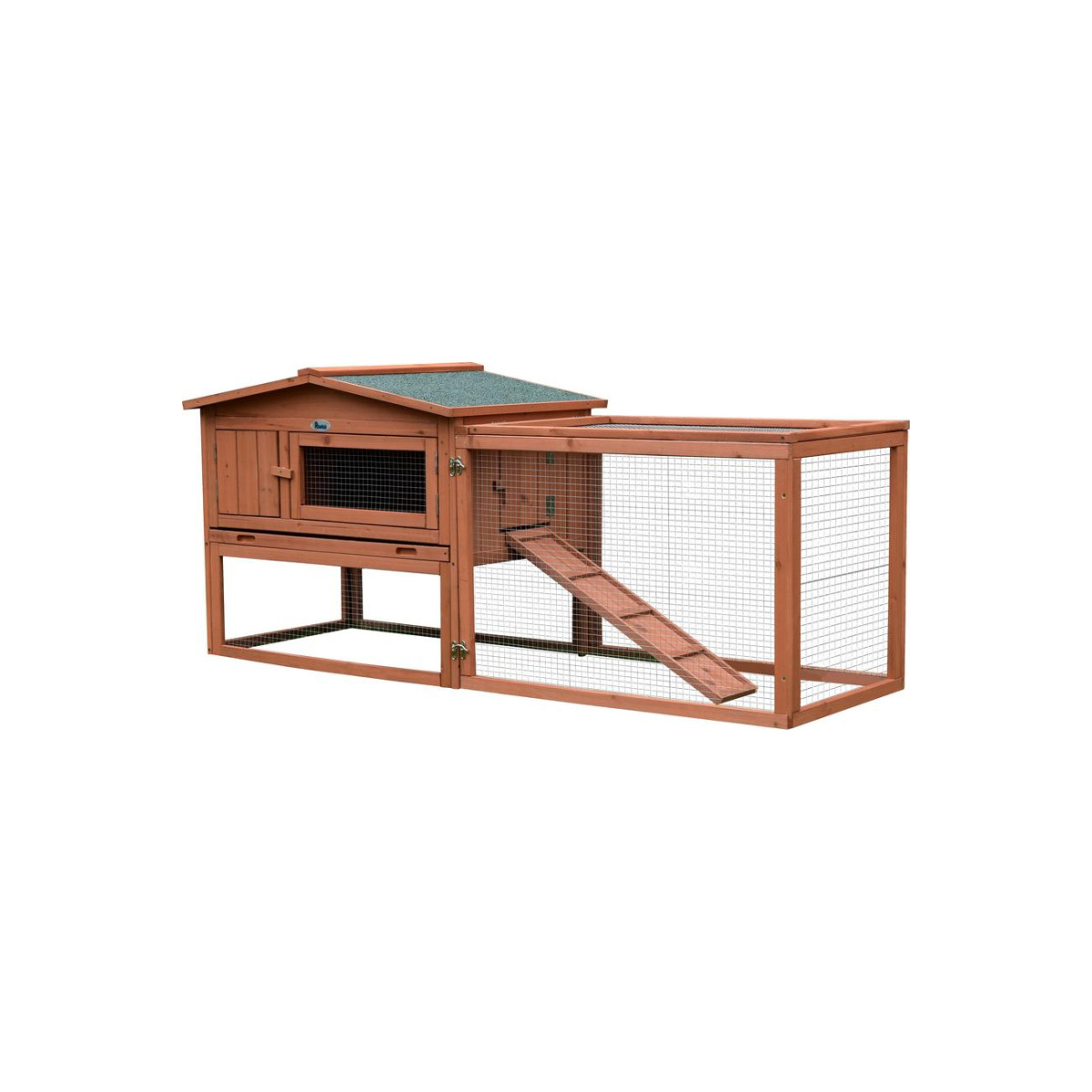 Králikáreň 158 × 58 × 68 cm ponúka praktické spojenie uzavretého domčeka a priestranného výbehu v jednom celku. Poskytuje bezpečné a pohodlné ustajnenie pre králiky a drobné zvieratá s dostatkom pohybu aj ochrany pred nepriaznivým počasím.