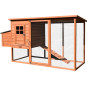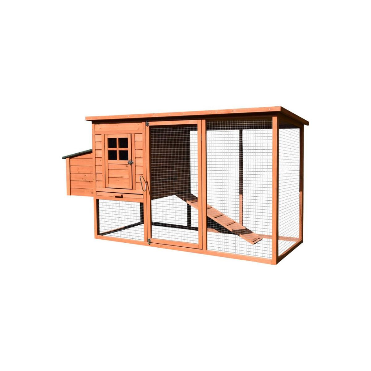 Drevený kurín so strechou (200 × 75,5 × 103 cm) poskytuje hydine komfortné a bezpečné prostredie na každodenný chov. Kombinácia vyvýšeného domčeka a priestranného výbehu umožňuje oddeliť pokojovú časť určenú na nocovanie a znášanie vajec od priestoru na pohyb počas dňa.