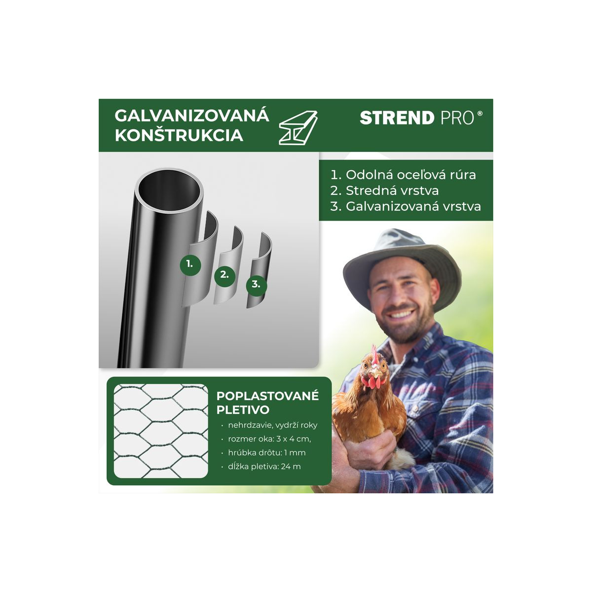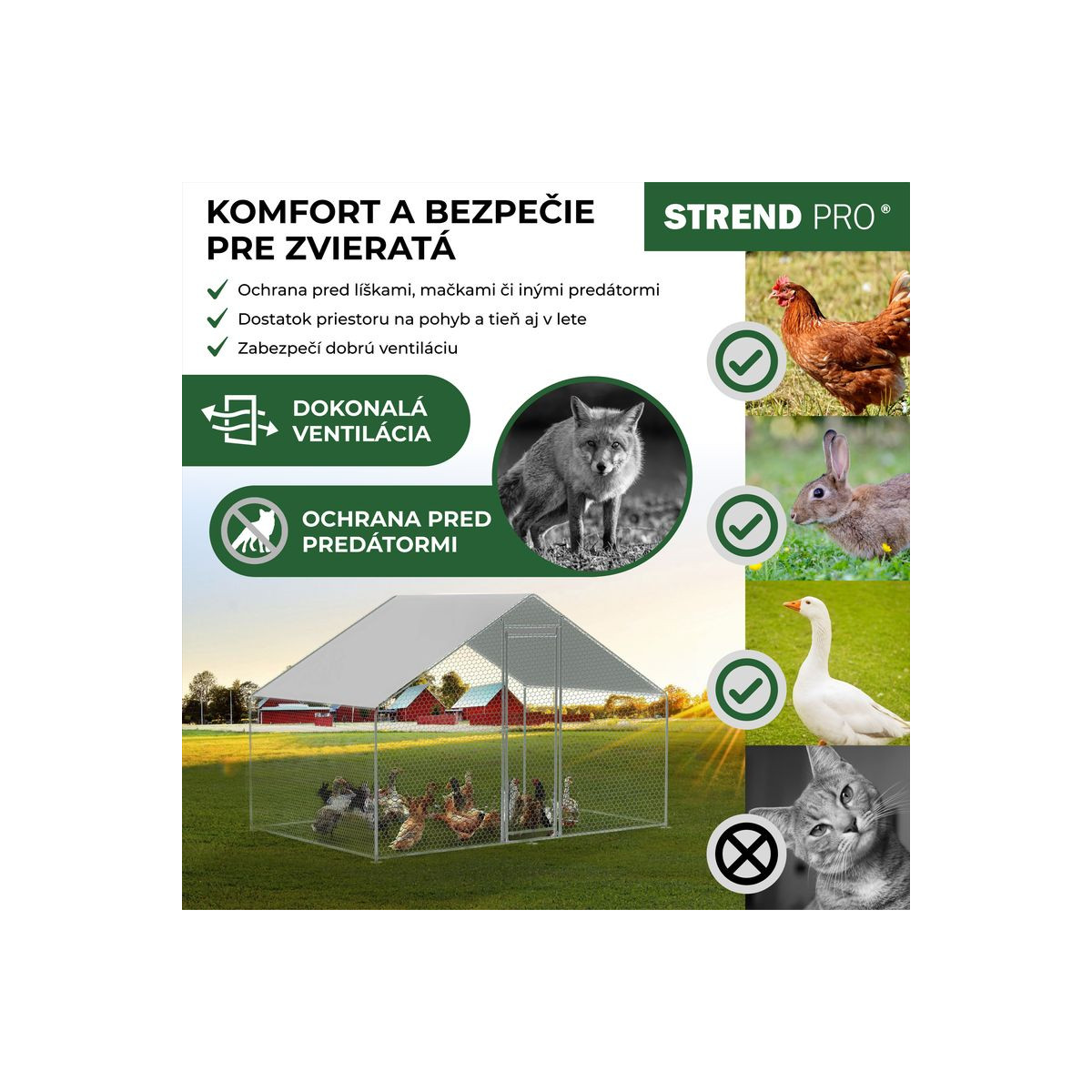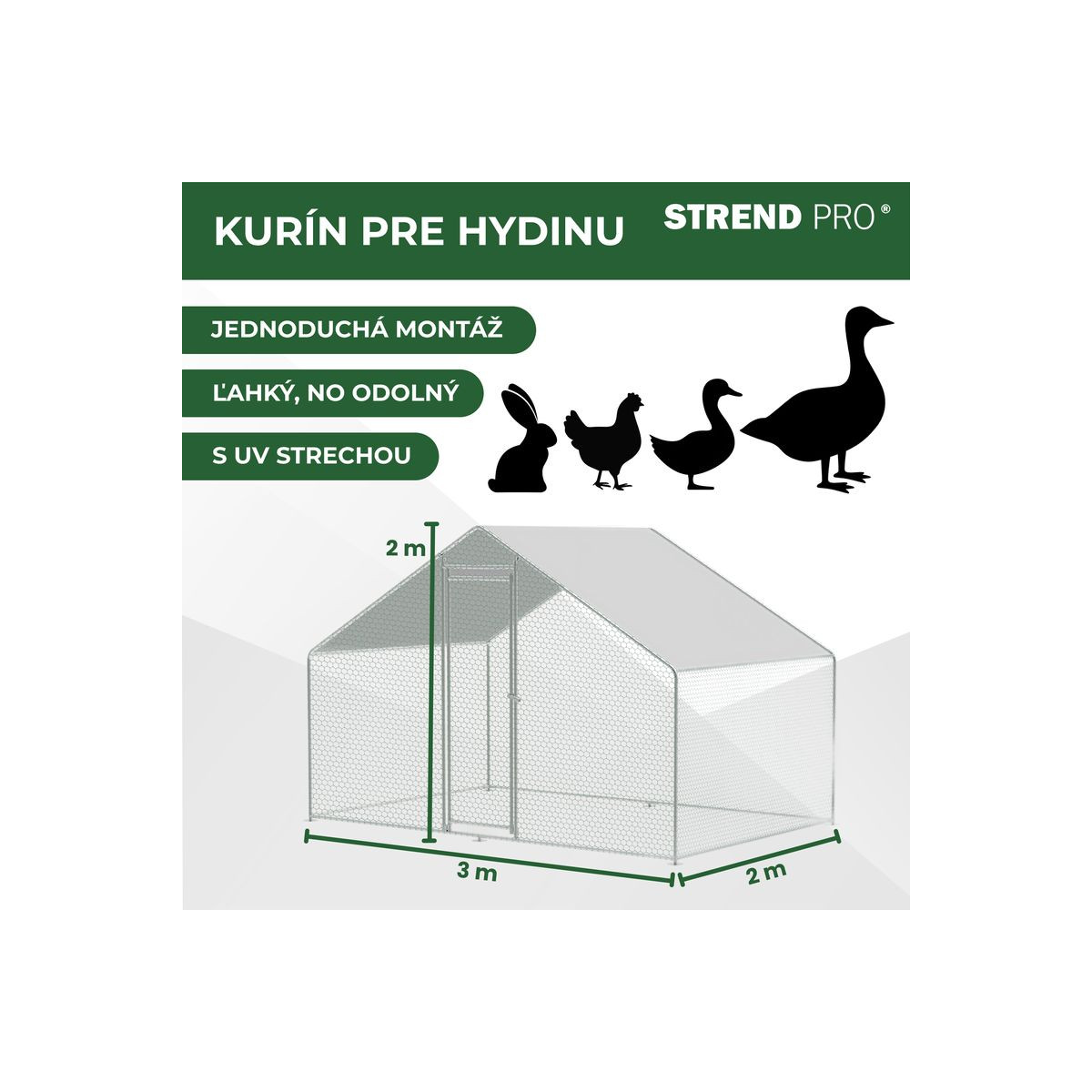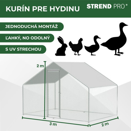 Kurín Strend Pro s rozmermi 3 × 2 × 2 m predstavuje ideálne riešenie pre bezpečný a pohodlný chov hydiny v záhrade alebo na farme. Vďaka priestrannej voliére poskytuje dostatok miesta na prirodzený pohyb, čím prispieva k lepšej kondícii zvierat.