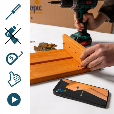 XL impregnované drevené pieskovisko SandTropic 150 cm so skladacím uzatváraním je prémiový výrobok priamo od výrobcu. Vyrobené zo škandinávskeho smreku I. triedy, ošetrené certifikovaným vodným impregnačným náterom v odtieni Pinia. Všetky montážne otvory sú predvŕtané – montáž je rýchla, presná a nevyžaduje vŕtačku ani meranie. Skladacie lavičky vytvárajú po zatvorení pevný ochranný kryt. Súčasťou balenia je bohaté príslušenstvo vrátane agrotkaniny, plachty, hákov a lopatky.