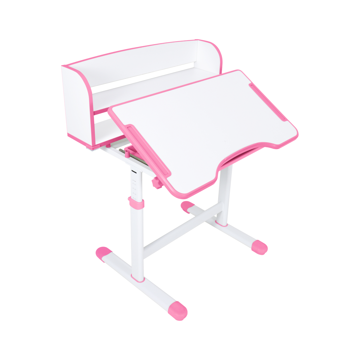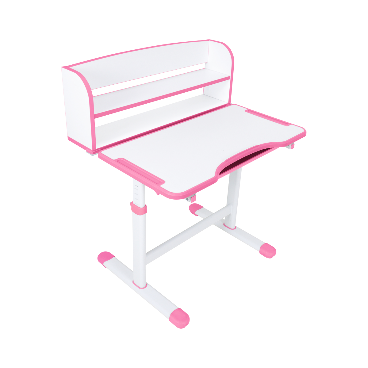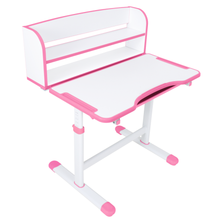 Stôl ponúka nastaviteľnú výšku a možnosť naklonenia pracovnej dosky až do 40°, čo zvyšuje komfort pri písaní, čítaní aj kreslení. Praktické priehradky, zásuvka a polica poskytujú dostatok priestoru na školské pomôcky a knihy.