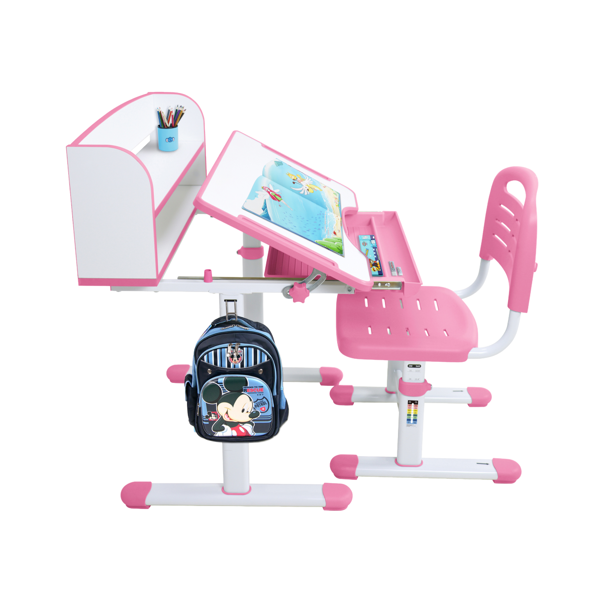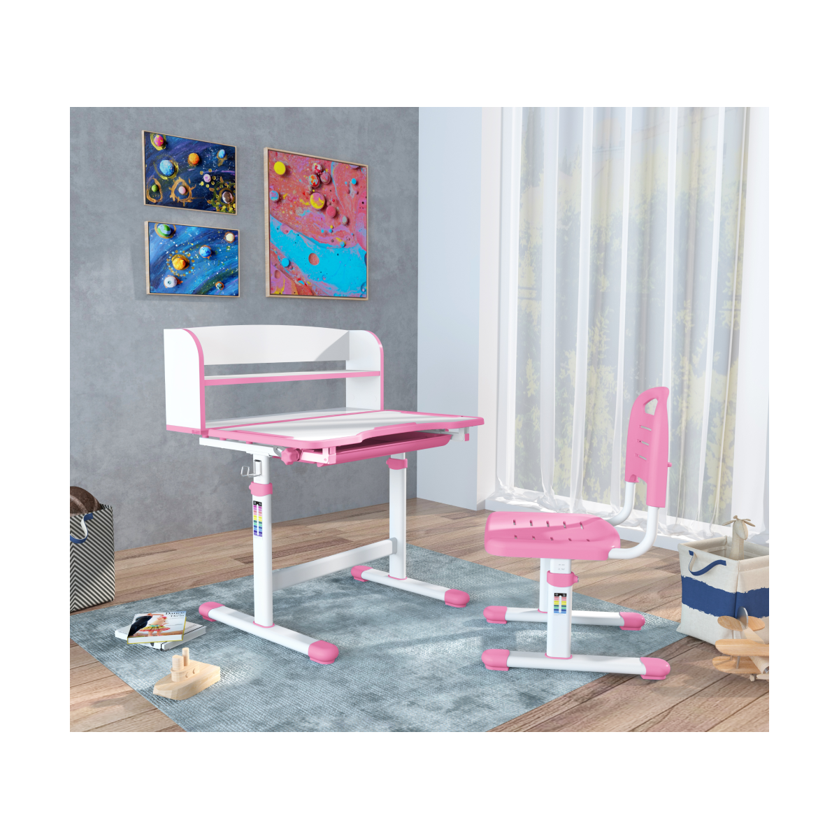 Set je vyrobený z odolných a bezpečných materiálov. Ružovo-biela kombinácia pôsobí jemne a hravo, ideálna do detskej izby.