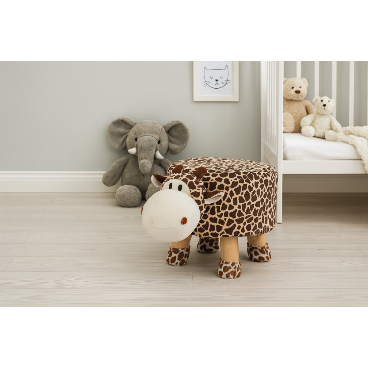 Detské taburetky s motívom zvieratka. Taburetka pre malé deti s plyšovým obalom v podobe obľúbeného zvieratka poskytne veľa zábavy. Je to očarujúca a praktická dekorácia do detskej izby. Taburetka je veľmi pohodlná a svojím vzhľadom určite zaujme každé dieťa, povzbudí ho k hre a hladkaniu. Nohy sú vybavené ponožkami, ktoré chránia podlahu pred poškriabaním a poskytujú väčšiu stabilitu. Obal taštičky sa dá odobrať, takže ju môžete ľahko udržiavať čistú.