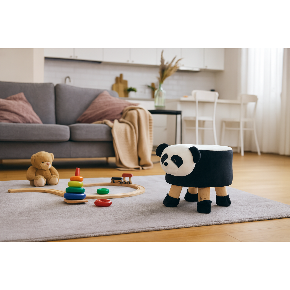 Detské taburetky s motívom zvieratka. Taburetka pre malé deti s plyšovým obalom v podobe obľúbeného zvieratka poskytne veľa zábavy. Je to očarujúca a praktická dekorácia do detskej izby. Taburetka je veľmi pohodlná a svojím vzhľadom určite zaujme každé dieťa, povzbudí ho k hre a hladkaniu. Nohy sú vybavené ponožkami, ktoré chránia podlahu pred poškriabaním a poskytujú väčšiu stabilitu. Obal taštičky sa dá odobrať, takže ju môžete ľahko udržiavať čistú.