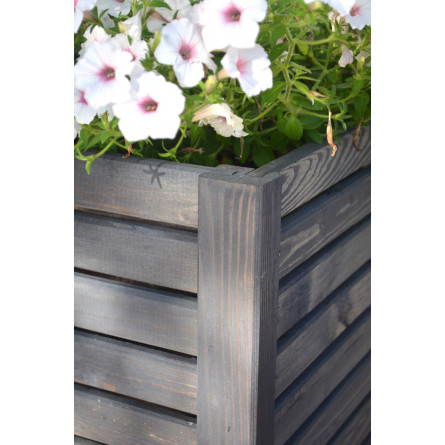 Veľký drevený kvetináč "SAVA 2" - svetlohnedý, vyrobený z prírodného borovicového dreva, štvorcového tvaru. Črepník má vo vnútri plastovú vložku, ktorá uľahčuje sadenie črepníka. Dokonalé prostredie pre letné kvety a nenahraditeľný prvok úpravy balkóna, záhrady či terasy.