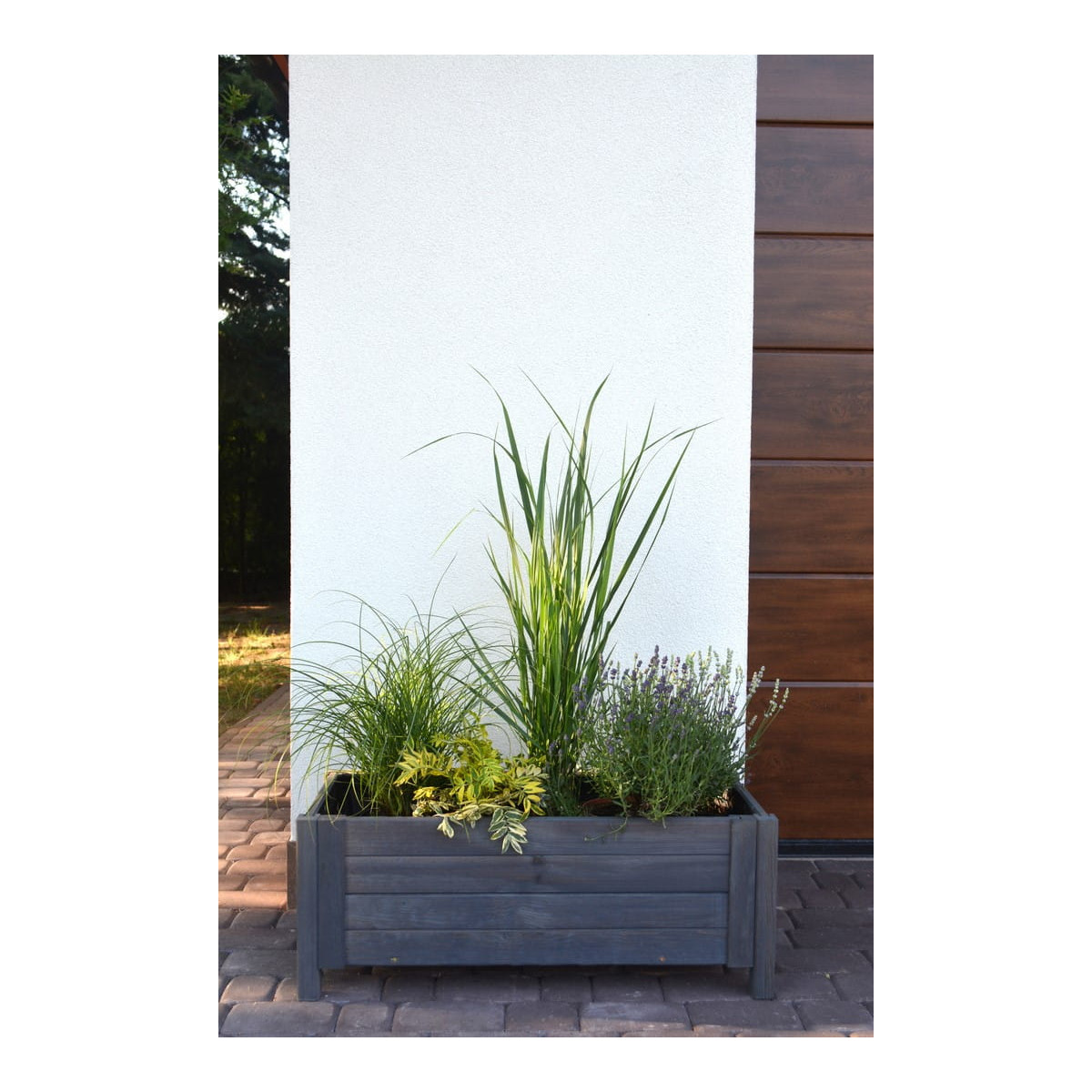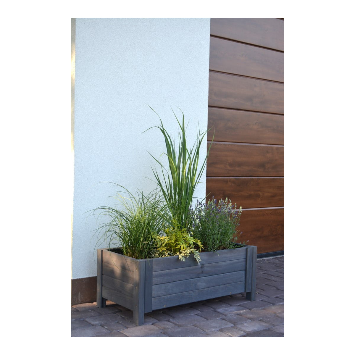 Drevené kvetináče na terasu v tmavo sivej farbe
