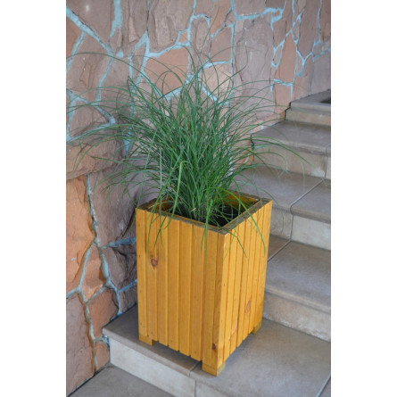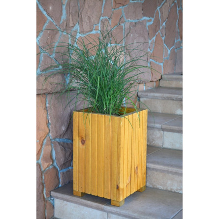 Veľký drevený kvetináč, vyrobený z prírodného borovicového dreva, štvorcového tvaru. Črepník má vo vnútri plastovú vložku, ktorá uľahčuje sadenie črepníka. Dokonalé prostredie pre letné kvety a nenahraditeľný prvok úpravy balkóna, záhrady či terasy.
