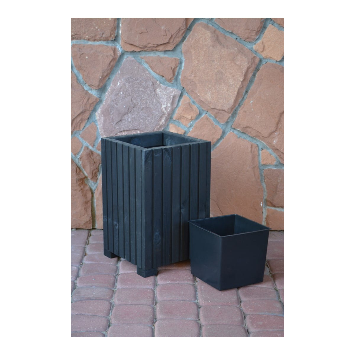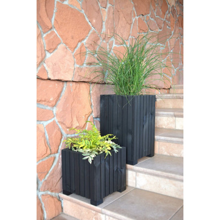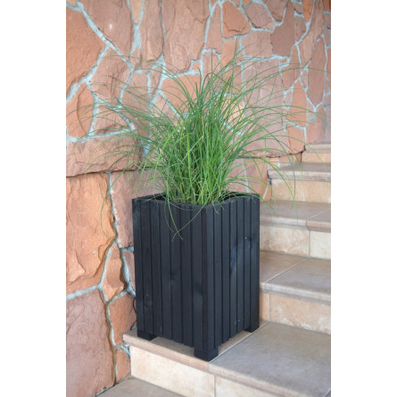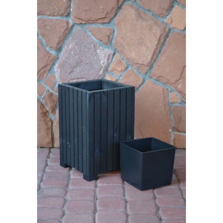 Veľký drevený kvetináč, vyrobený z prírodného borovicového dreva, štvorcového tvaru. Črepník má vo vnútri plastovú vložku, ktorá uľahčuje sadenie črepníka. Dokonalé prostredie pre letné kvety a nenahraditeľný prvok úpravy balkóna, záhrady či terasy.