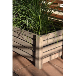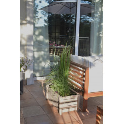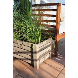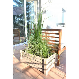 Veľký drevený kvetináč, vyrobený z prírodného borovicového dreva, štvorcového tvaru. Črepník má vo vnútri plastovú vložku, ktorá uľahčuje sadenie črepníka. Dokonalé prostredie pre letné kvety a nenahraditeľný prvok úpravy balkóna, záhrady či terasy.