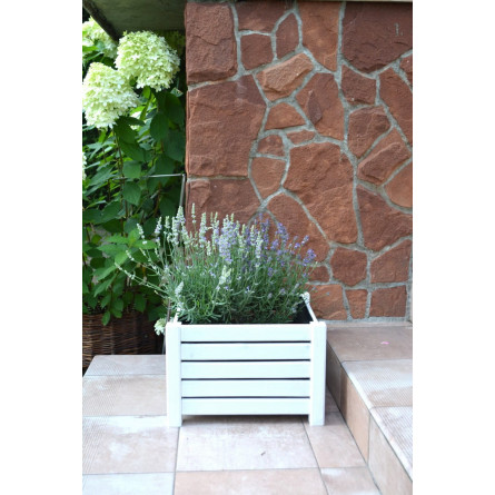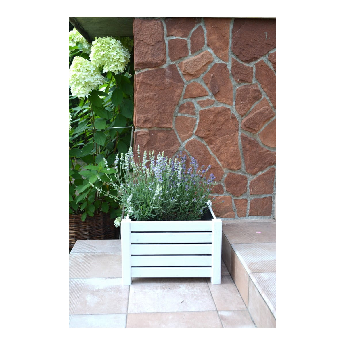 Kvetináč z borovicového dreva 38 cm v bielej farbe