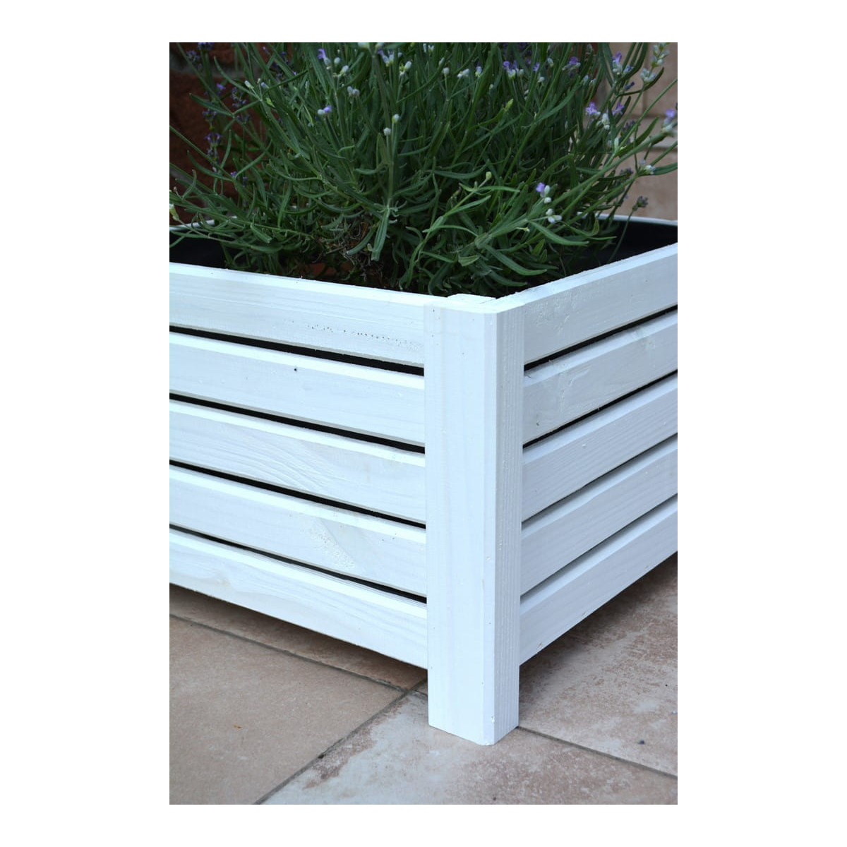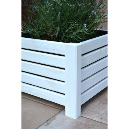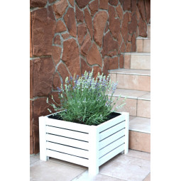 Veľký drevený kvetináč, vyrobený z prírodného borovicového dreva, štvorcového tvaru. Črepník je vo vnútri naplnený agrotextíliou - je pripravený na výsadbu. Dokonalé prostredie pre letné kvety a nenahraditeľný prvok úpravy balkóna, záhrady či terasy.