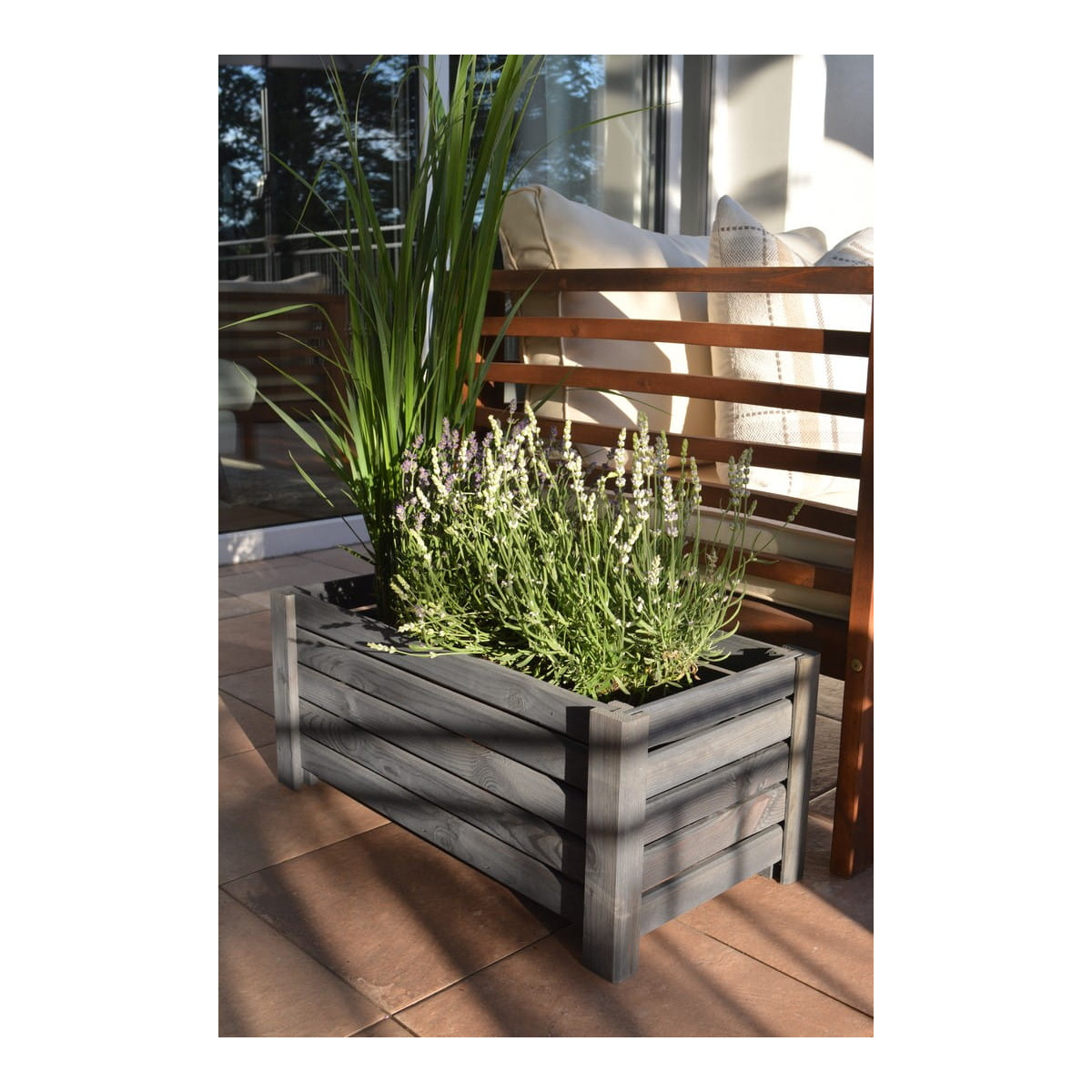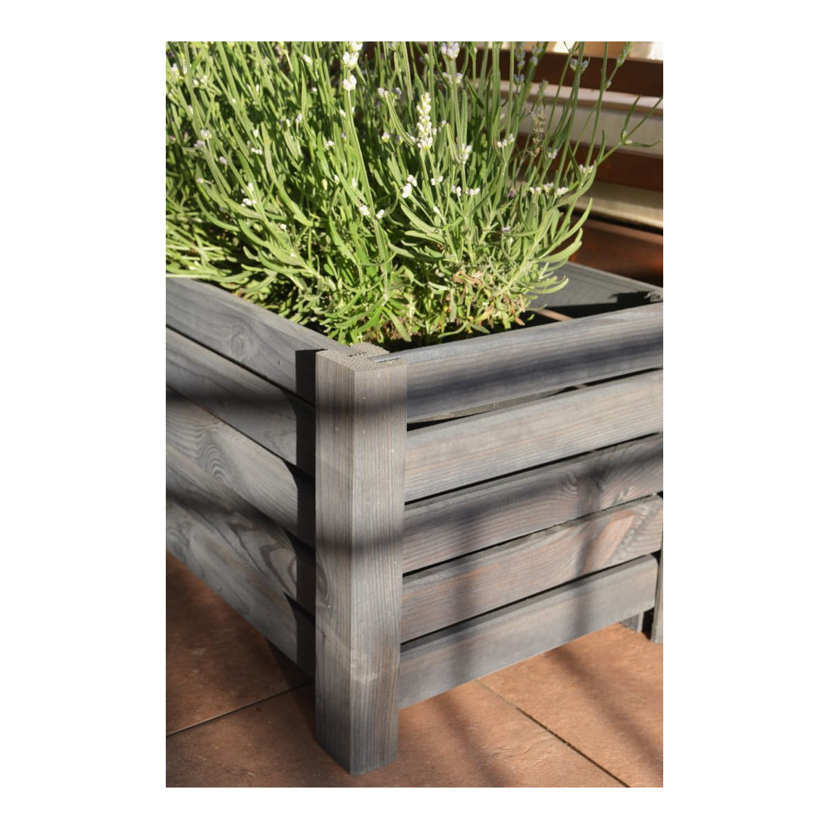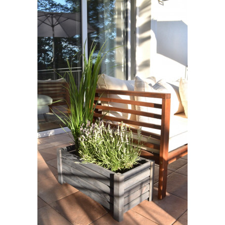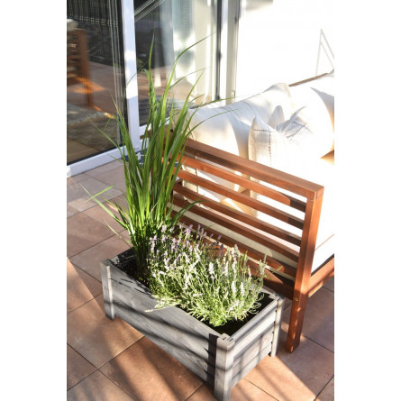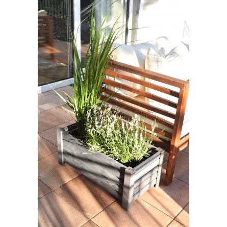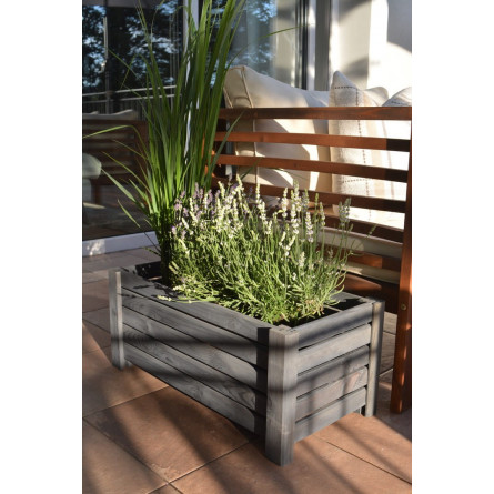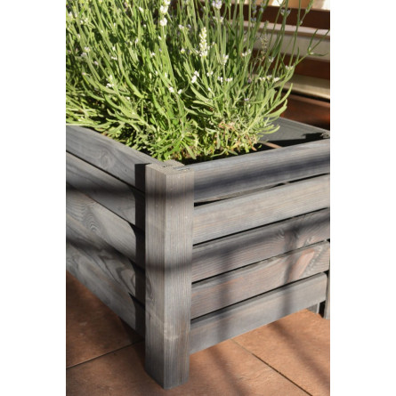 Vyvýšený drevený kvetináč v tmavo sivej farbe