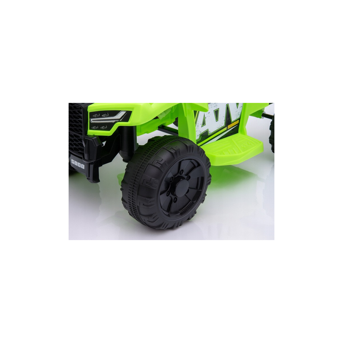 Štvorkolka je vybavená veľkými kolesami s priemerom 18 cm a šírkou 8 cm, vyrobenými z protišmykového plastu. Vďaka tomu je vozidlo ideálne na hladké podlahy aj na náročnejšie povrchy, ako je tráva alebo dlažobné kocky.