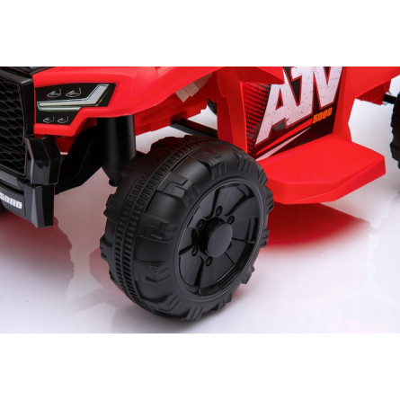 Štvorkolka je vybavená veľkými kolesami s priemerom 18 cm a šírkou 8 cm, vyrobenými z protišmykového plastu. Vďaka tomu je vozidlo ideálne na hladké podlahy aj na náročnejšie povrchy, ako je tráva alebo dlažobné kocky.