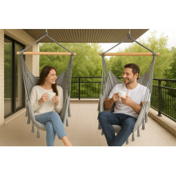 - Gumové nožičky umožňujú umiestniť hojdačku na terasu bez šmýkania a poškriabania povrchu.