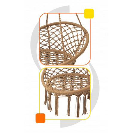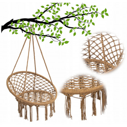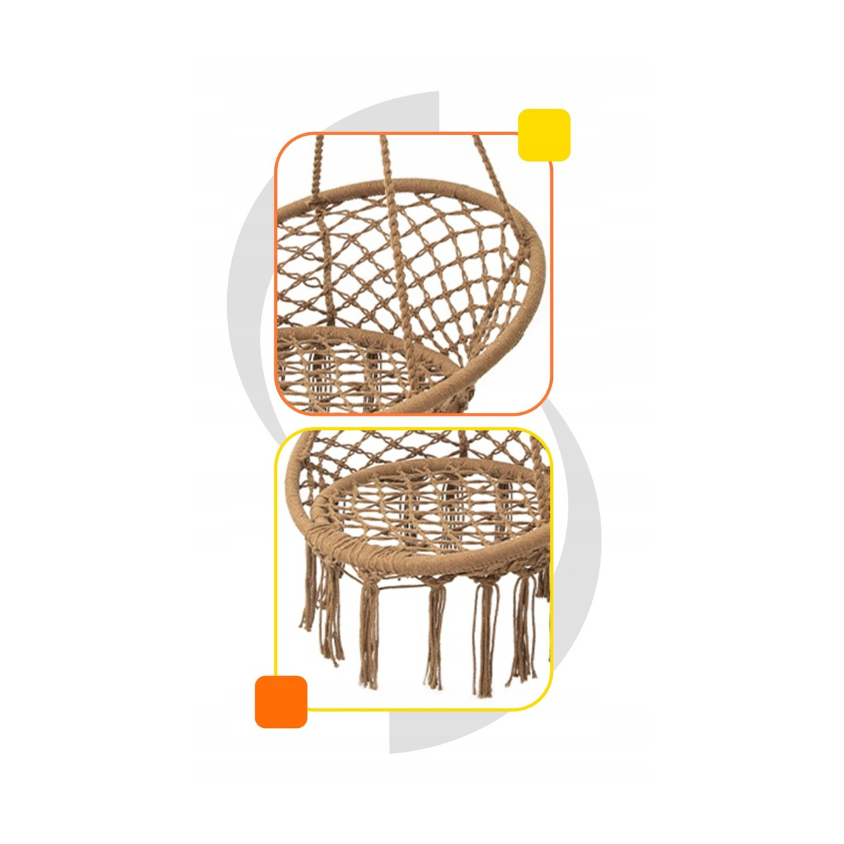 Zatraktívni každý interiér, ozdobné výplety a strapce zdôraznia moderný dizajn. Pevná rukoväť poslúži na pohodlné zavesenie na strome, na hojdacej konštrukcii alebo na háku pripevnenom k stropu.