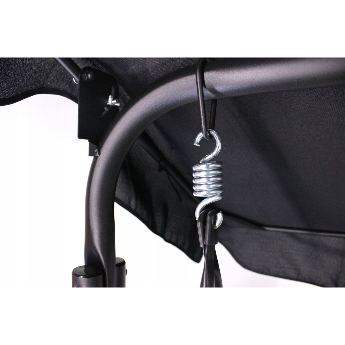 Pevná oceľová konštrukcia s práškovou povrchovou úpravou zaručuje stabilitu a odolnosť voči poveternostným podmienkam. Pružinové zavesenie zabezpečuje plynulé a bezpečné hojdanie. Maximálna nosnosť 220 kg umožňuje pohodlné sedenie pre 2 až 3 osoby.