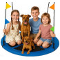 Hojdačka bocianie hniezdo poskytuje pohodlie a nezabudnuteľnú zábavu pre deti. Je ideálny pre domáce ihriská v záhrade alebo na pozemku. Bocianie hniezdo pozostáva z kovového širokého okraja, ku ktorému je pripevnené sedadlo vo forme pevnej plachty alebo lana. Obruč je pripevnená k stromu alebo stropu pomocou dvoch lán, čo zaručuje väčšiu stabilitu pri hre.