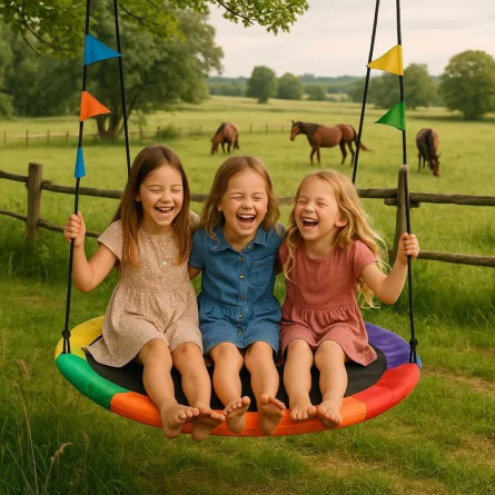 Hojdačka bocianie hniezdo poskytuje pohodlie a nezabudnuteľnú zábavu pre deti. Je ideálny pre domáce ihriská v záhrade alebo na pozemku. Bocianie hniezdo pozostáva z kovového širokého okraja, ku ktorému je pripevnené sedadlo vo forme pevnej plachty alebo lana. Obruč je pripevnená k stromu alebo stropu pomocou dvoch lán, čo zaručuje väčšiu stabilitu pri hre.