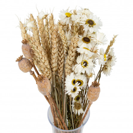 Kytica sušených kvetov Poppy-makovica, slamienka, pšenica