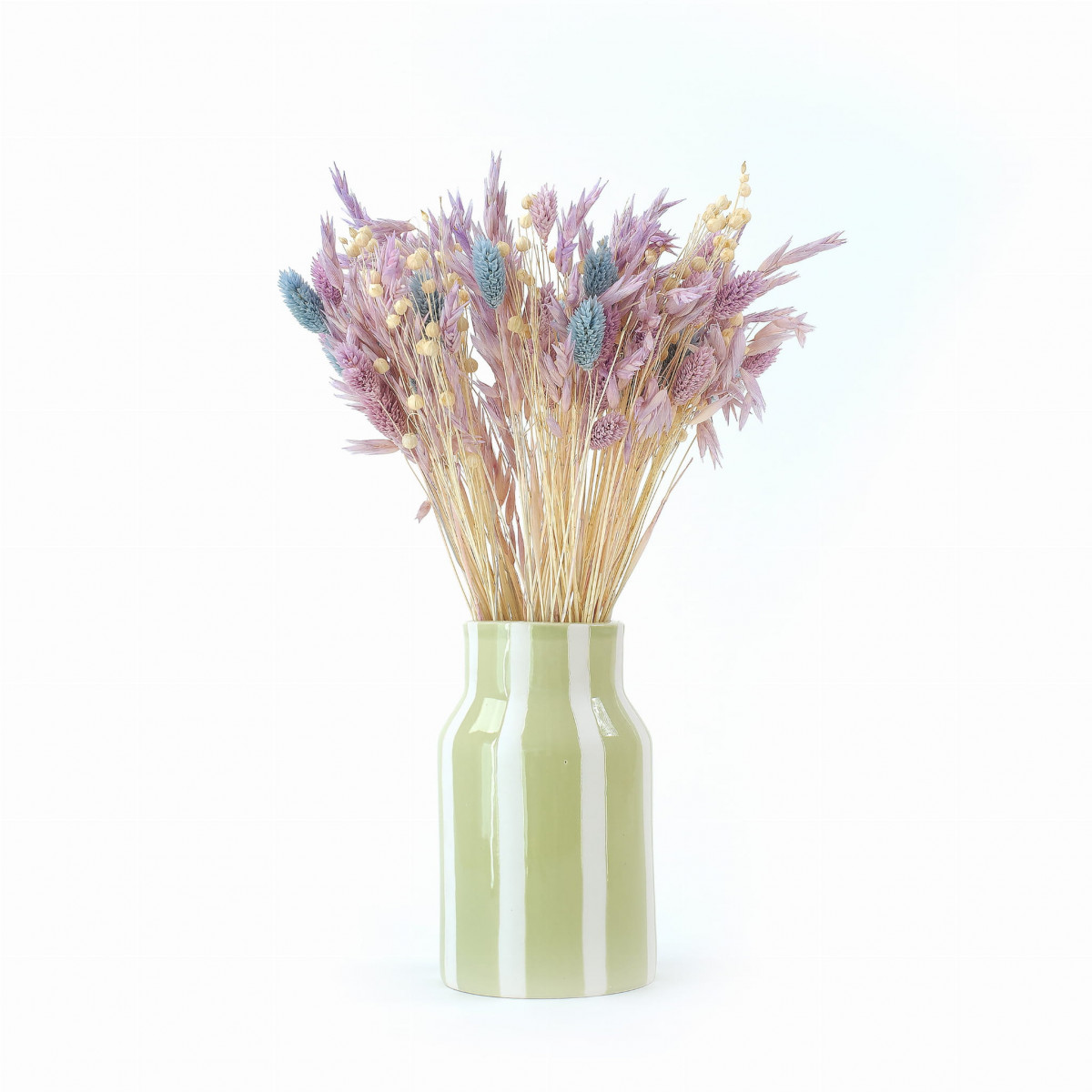 - Keďže rastliny sú zo 100 % prírodného materiálu, môžu sa mierne líšiť veľkosťou alebo odtieňom – je to úplne normálne a robí každý buket jedinečným.