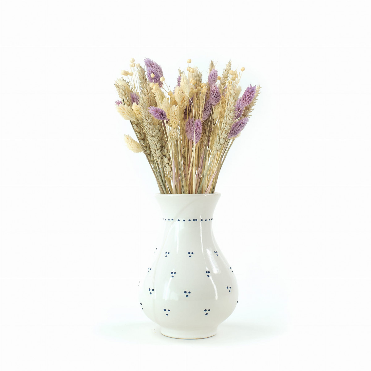 Výnimočná kombinácia starostlivo vybraných sušených rastlín z poľských pestovaní v pastelových odtieňoch s prírodnou zeleňou obilnín. Narodeniny, kolaudácia, svadba – každá príležitosť je dobrá na darovanie sušenej kytice, o to viac, keď môže zostať s obdarovanou osobou dlhšie a pripomínať krásne spomienky. Sušené rastliny tvoria bohatú kyticu. Sú vhodné nielen ako darček, ale aj ako vkusné spestrenie interiéru bytu, reštaurácie či hotela. A čo je najdôležitejšie – nemusíš meniť vodu vo váze Pri správnej starostlivosti môžu byť prirodzenou ozdobou až do 3 rokov.