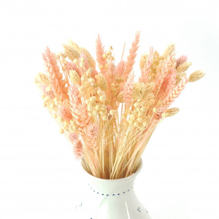 Sušená kytica bielo ružová – sušené trávy a obilniny