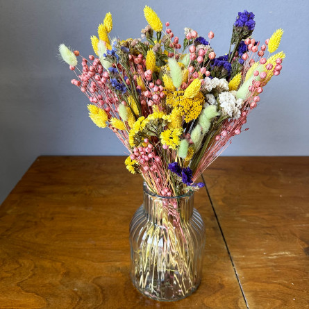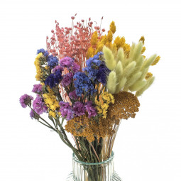 Jedinečná kombinácia starostlivo vybraných sušených kvetov vo veselých a sviežich farbách. Narodeniny, kolaudácia, svadba – každá príležitosť je ideálna na darovanie sušenej kytice, najmä keď môže s obdarovanou osobou zostať dlhšie a pripomínať krásne spomienky. Kytica zo sušených rastlín je bohatá a výrazná. Hodí sa ako darček aj ako štýlový doplnok do interiéru bytu, hotela či reštaurácie. A čo je najlepšie – nemusíš meniť vodu vo váze.