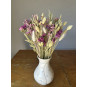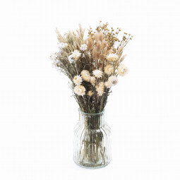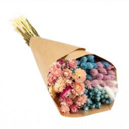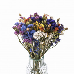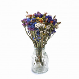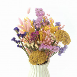 Elegantná kytica v odtieňoch bielej, fialovej, s jemnými dotykmi ružovej a zelenej – ideálna na darovanie pri akejkoľvek príležitosti. Či už ide o narodeniny, kolaudáciu alebo svadbu, sušené kvety sú krásnym a trvácnym spôsobom, ako vyjadriť pozornosť. Táto kytica vydrží celé mesiace bez nutnosti starostlivosti. Je dokonalou ozdobou interiéru bytu, reštaurácie či hotela. A čo je najlepšie – žiadna voda, žiadna údržba.