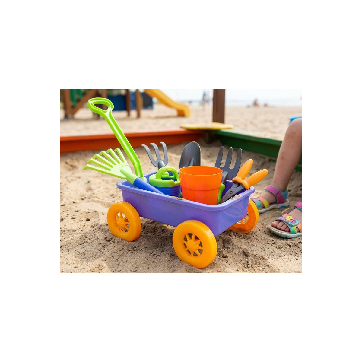 9-dielna detská sada do piesku Strend Pro s vozíkom je ideálna na hranie v pieskovisku aj na pláži. Obsahuje všetko potrebné pre kreatívnu zábavu detí od 3 rokov.
