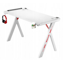 Biely hráčsky stôl s LED podsvietením, 140 cm