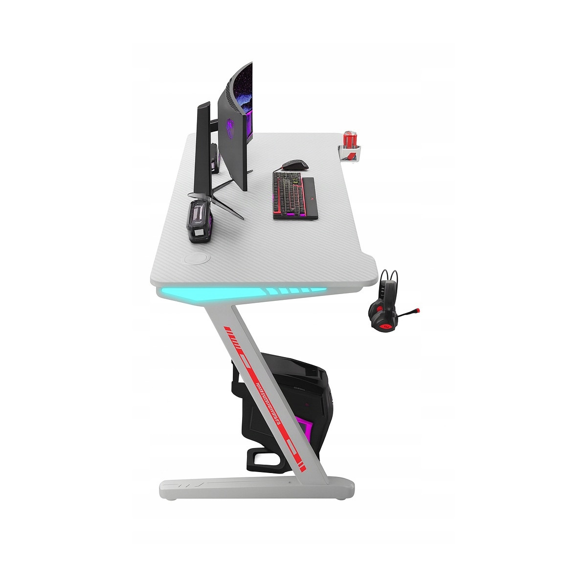 Moderný herný počítačový stôl s LED osvetlením – štýlový a funkčný stôl pre hráčov s dostatočným priestorom na monitor, herné príslušenstvo a káble. Robustná konštrukcia, elegantný dizajn a praktické detaily robia z tohto stola ideálny doplnok herného prostredia.