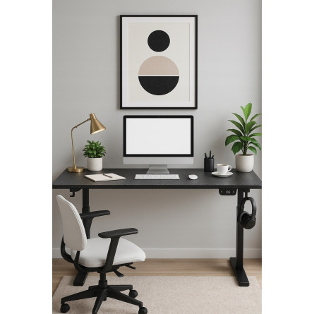 Tento elektricky výškovo nastaviteľný stôl je ideálny pre moderné pracoviská. Výška stola je plynule nastaviteľná, ovládanie je jednoduché pomocou LED panela. Stolová doska s hrúbkou 18 mm poskytuje pevnú povrchovú plochu, podporná konštrukcia z ocele zabezpečuje stabilitu. Vďaka zabudovaným LED prvkom, prietokovým káblovým priechodkám, držiaku na slúchadlá a pevnej konštrukcii je ideálny pre prácu či hranie v domácnosti.