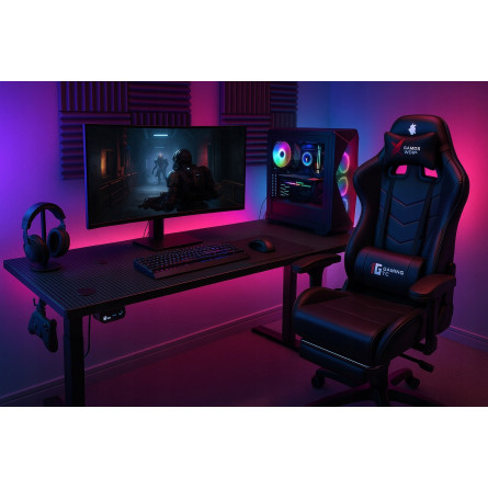Tento elektricky výškovo nastaviteľný stôl je ideálny pre moderné pracoviská. Výška stola je plynule nastaviteľná, ovládanie je jednoduché pomocou LED panela. Stolová doska s hrúbkou 18 mm poskytuje pevnú povrchovú plochu, podporná konštrukcia z ocele zabezpečuje stabilitu. Vďaka zabudovaným LED prvkom, prietokovým káblovým priechodkám, držiaku na slúchadlá a pevnej konštrukcii je ideálny pre prácu či hranie v domácnosti.