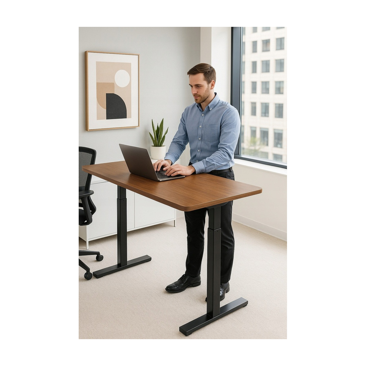 • Intuitívny ovládací panel umiestnený na okraji dosky umožňuje rýchle a pohodlné nastavenie výšky – od 72 do 117 cm – bez nutnosti prerušovať prácu.