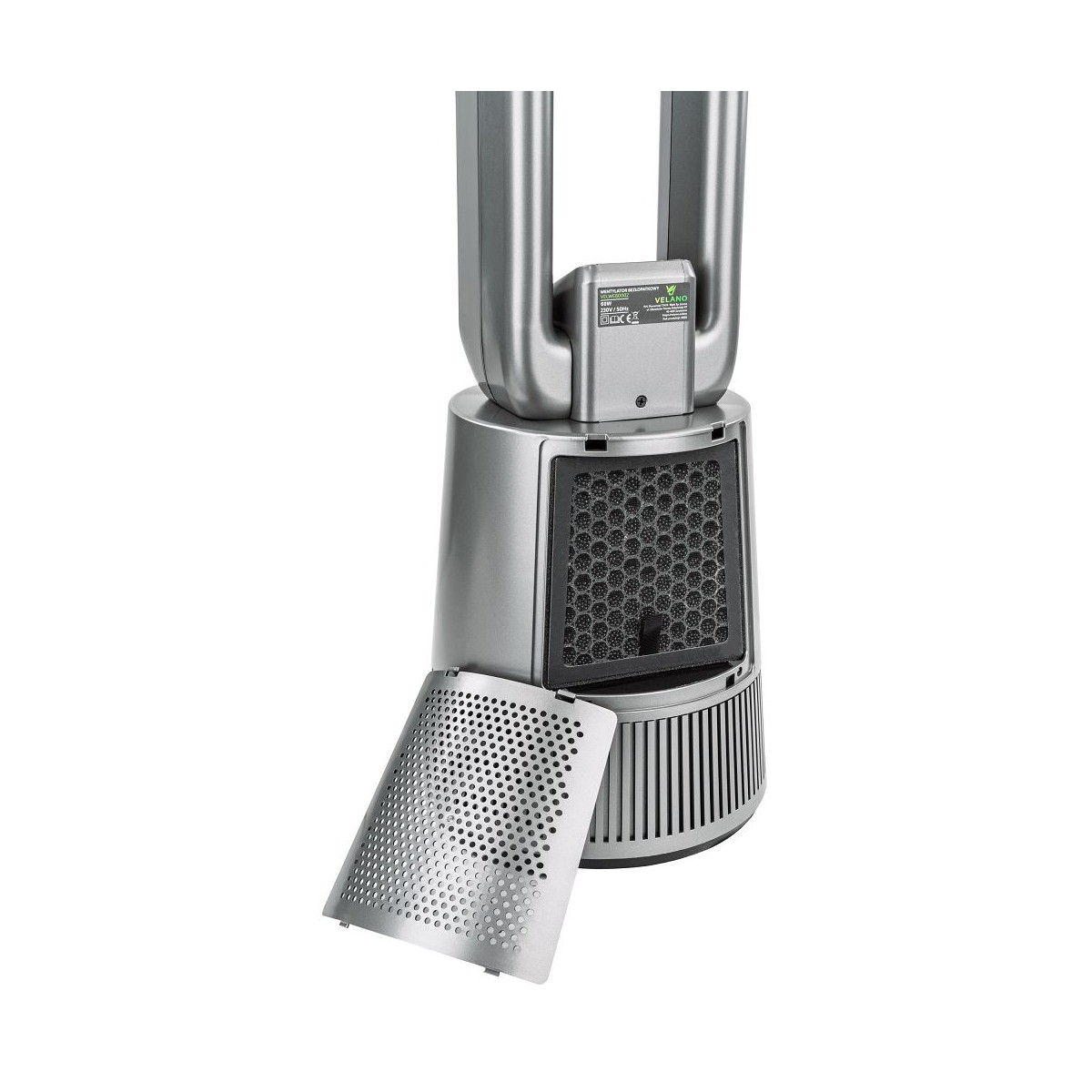 Ventilátor Velano používa inovatívny bezlopatkový systém, ktorý znižuje riziko poranenia a zabezpečuje rovnomerný prúd vzduchu. Vďaka tomu je zariadenie bezpečné pre deti aj zvieratá a zároveň účinne chladí. Použitá technológia generuje silný, no jemný prúd vzduchu bez nepríjemného prievanu.