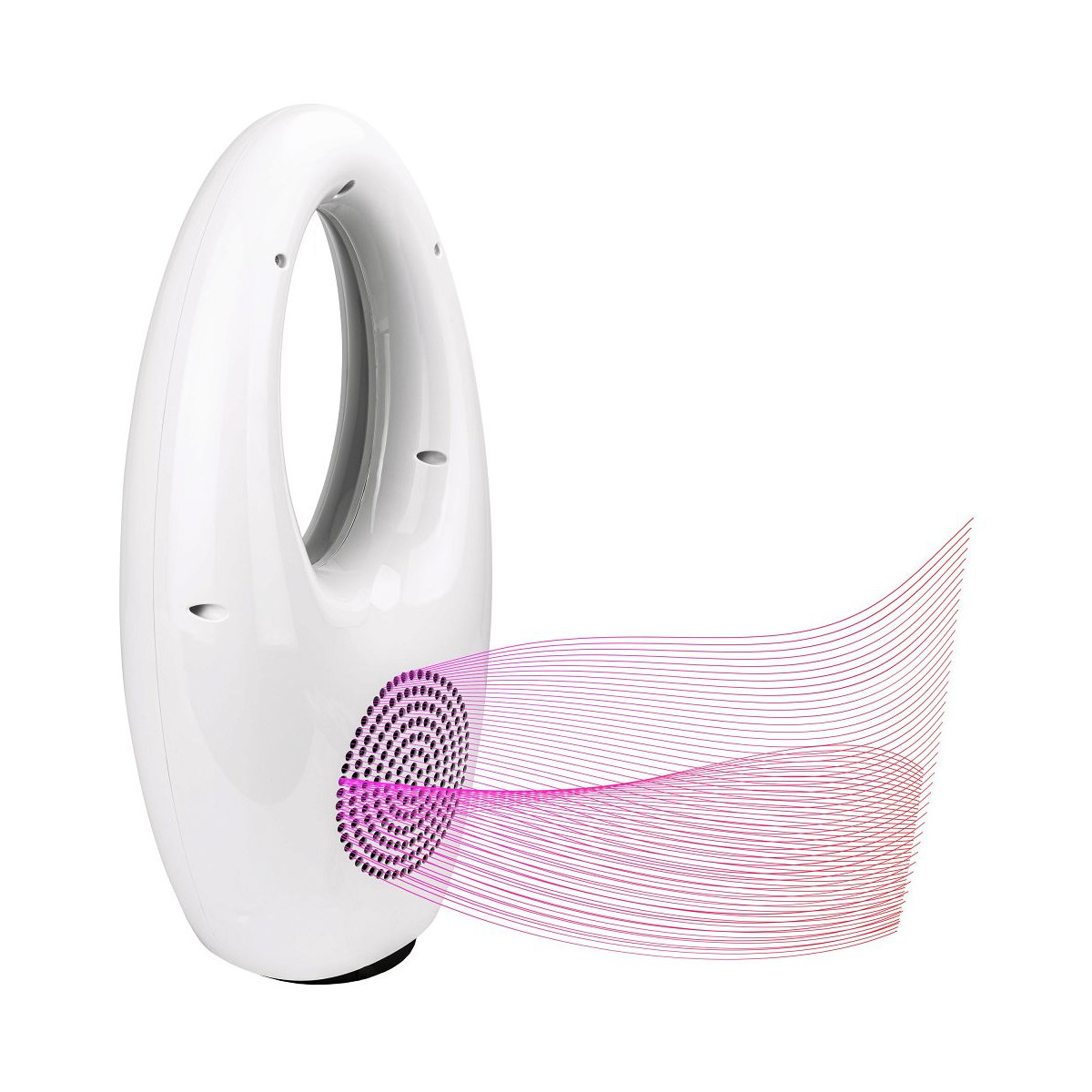 Ventilátor využíva inovatívny bezlopatkový systém, ktorý zabezpečuje rovnomerné a bezpečné chladenie bez rizika poranenia – ideálne pre rodiny s deťmi či domácimi miláčikmi.
