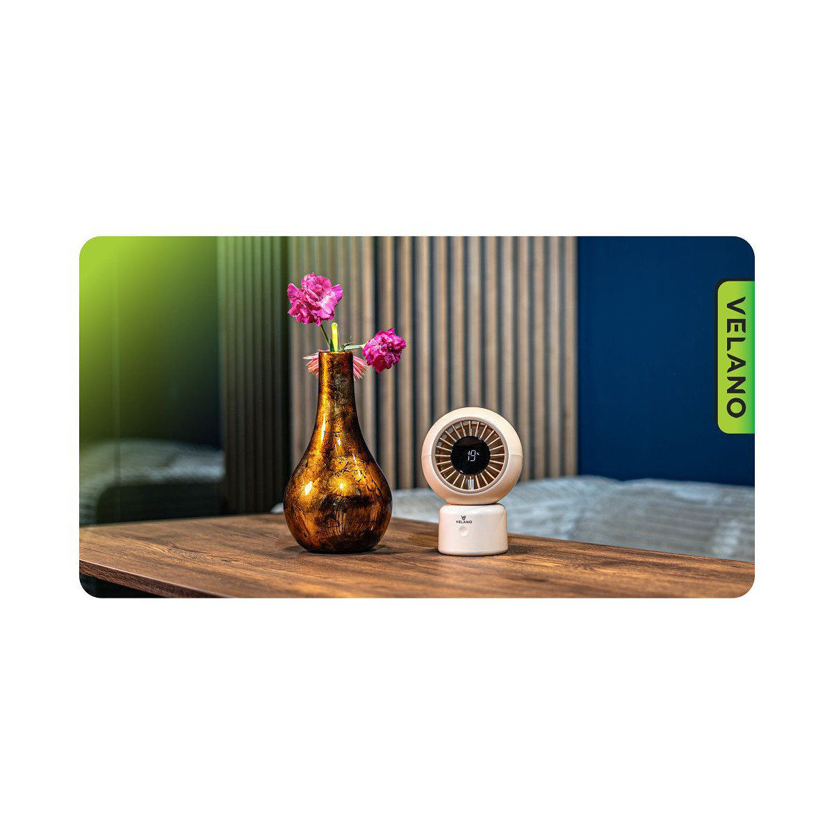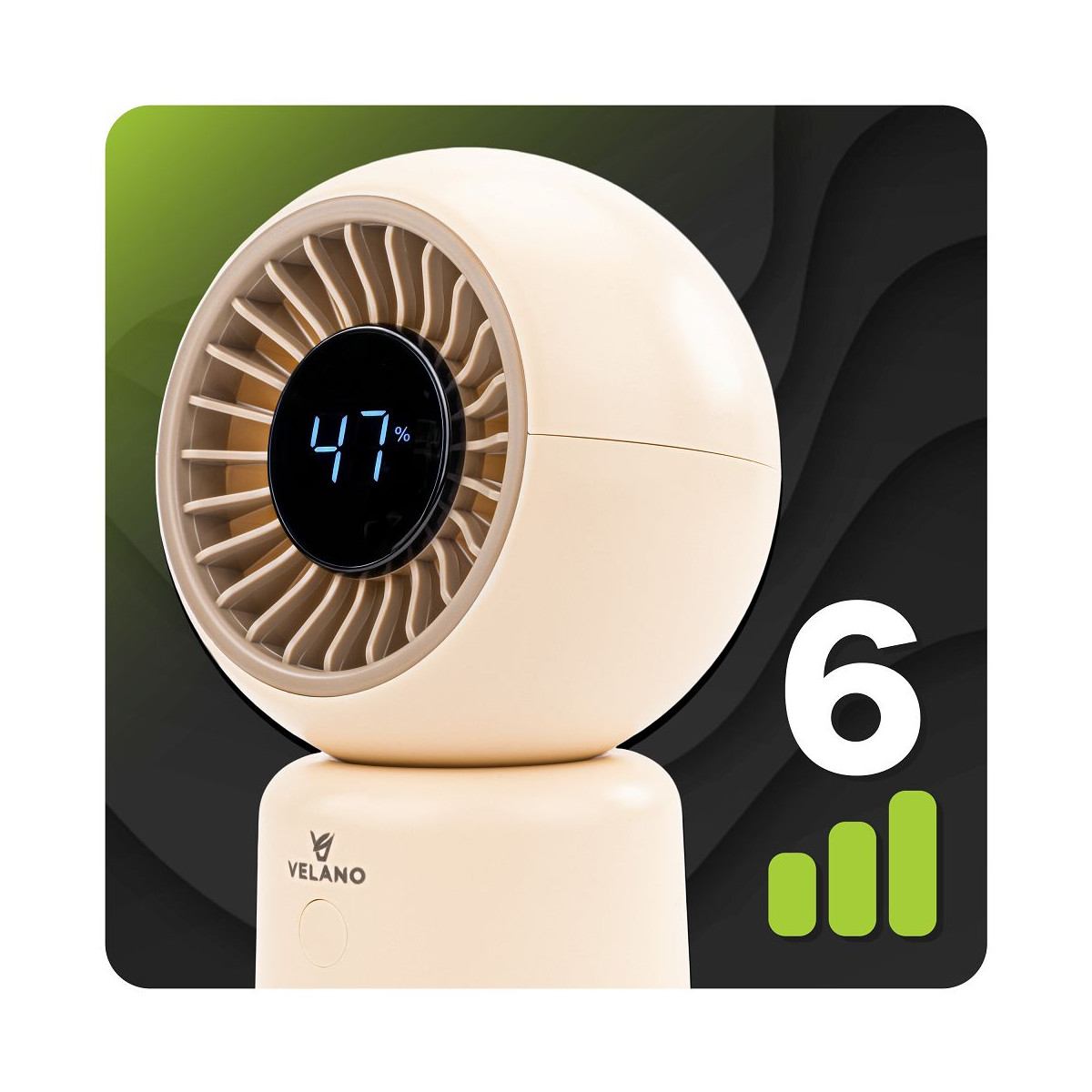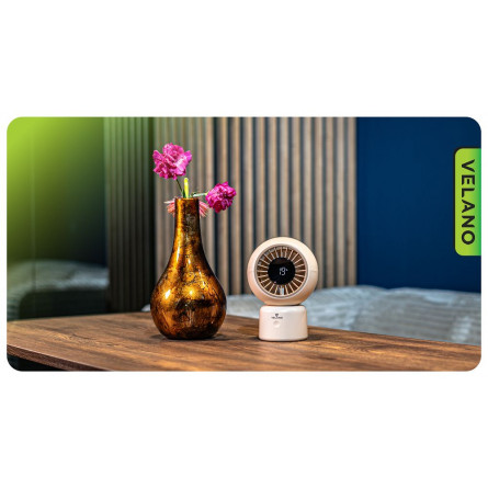 Kompaktný stolový ventilátor s výkonnou batériou, 6 rýchlosťami, osciláciou a USB-C nabíjaním. Tichý chod, moderný dizajn a mobilita bez obmedzení.
