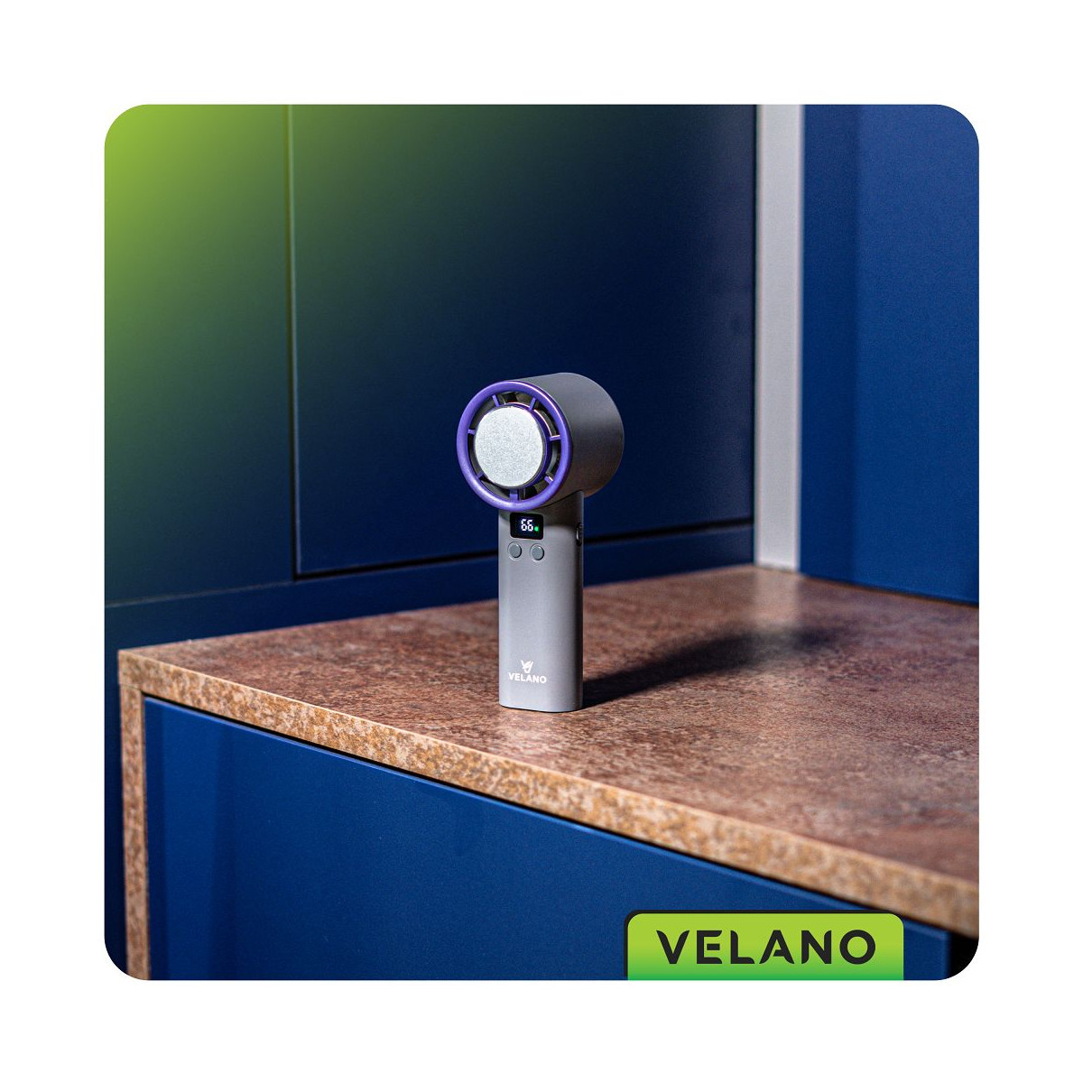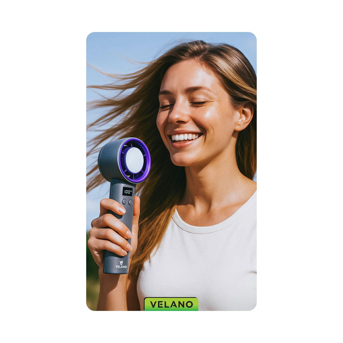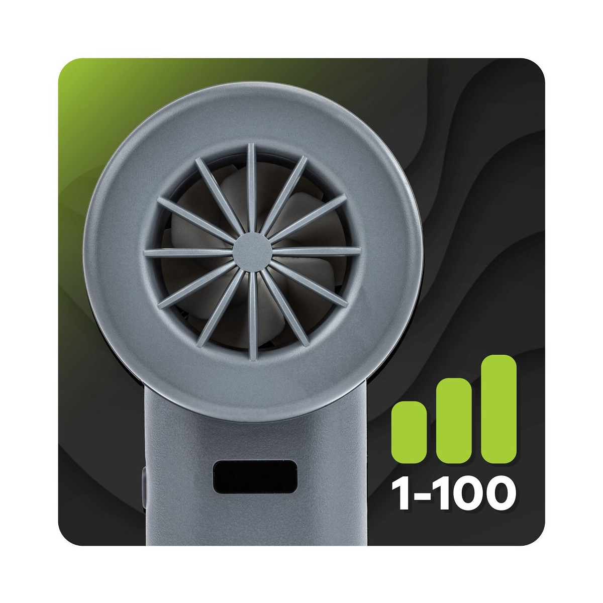 Prenosný ventilátor s výkonným akumulátorom, tichým chodom, funkciou okamžitého chladenia, LCD displejom a plynulou reguláciou výkonu od 1 do 100 %.