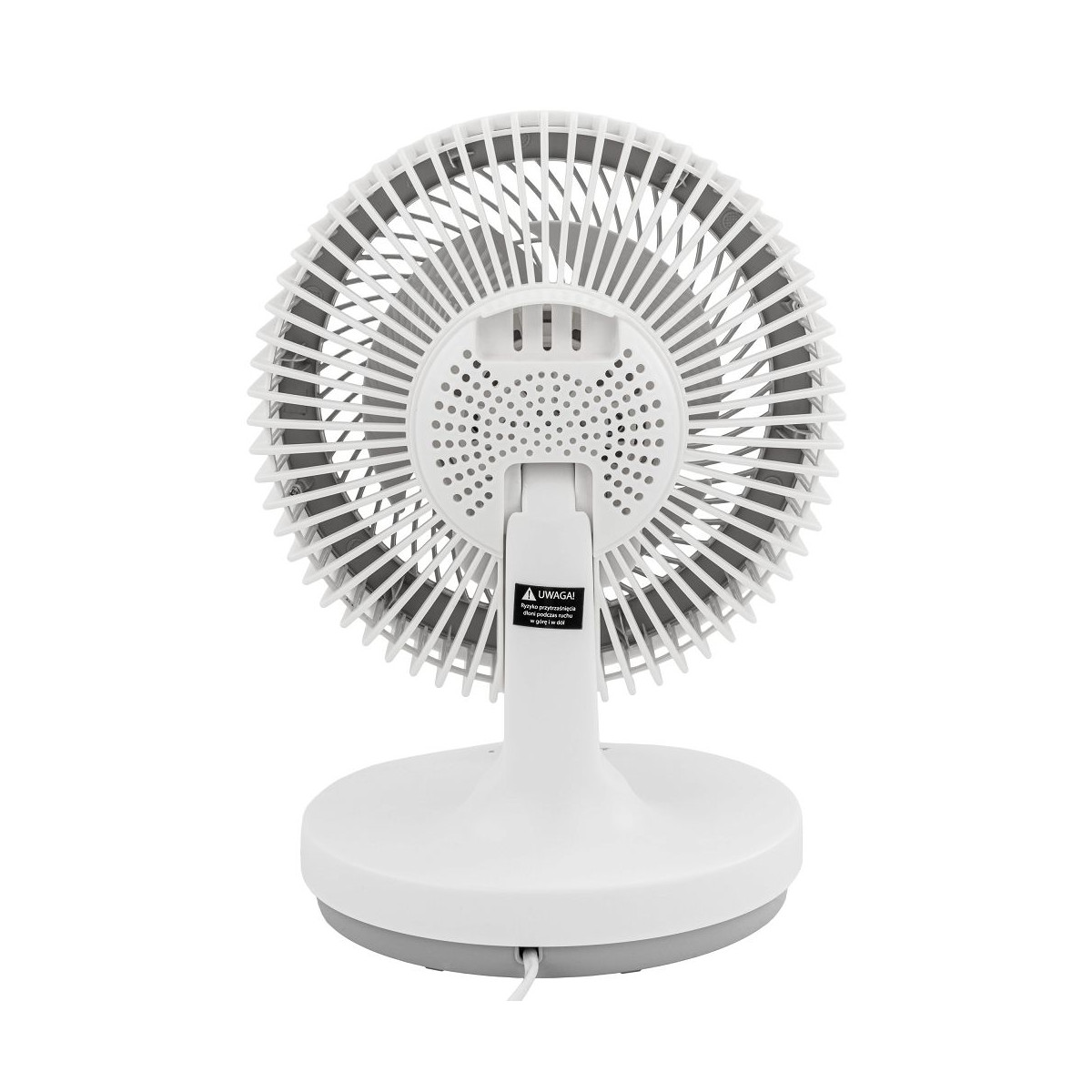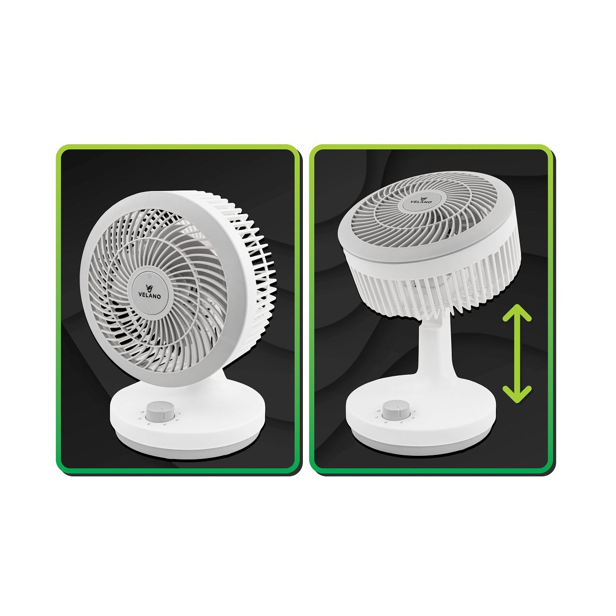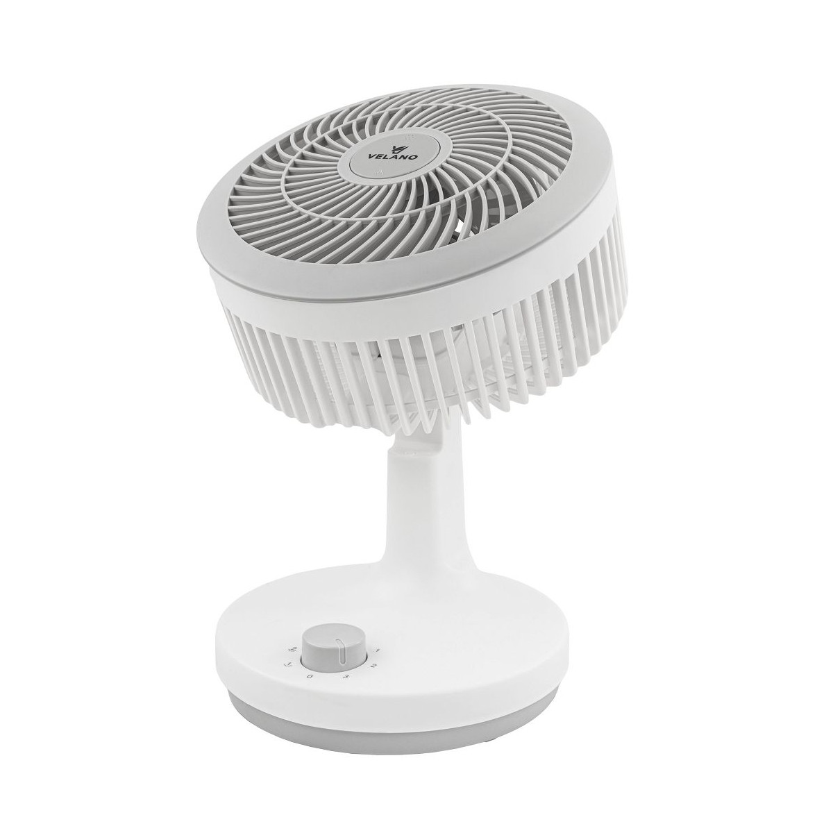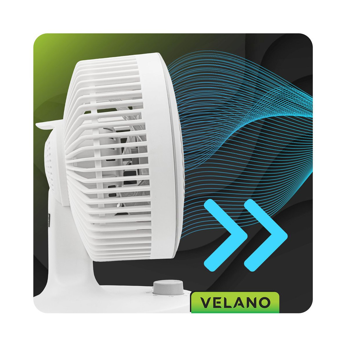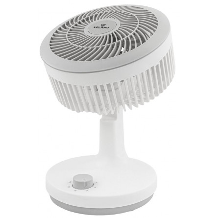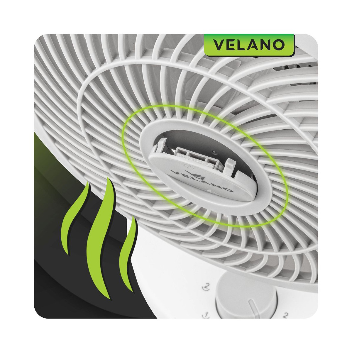 Stolový ventilátor Velano s výkonom 50 W, 3 rýchlosťami, osciláciou a aromaterapiou. Tichý chod, nastaviteľný sklon a stabilná konštrukcia pre maximálne pohodlie.