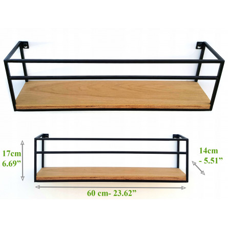 Elegantná a štýlová nástenná polica vyrobená ručne z kovu a dubovej dyhy. Štýlová a predovšetkým funkčná polica na kľúče, telefón, hodinky alebo okuliare. Vyrobená s dôrazom na každý detail. Pevná a robustná, bude vám slúžiť mnoho rokov. Perfektne sa hodí do moderných interiérov, zariadených v retro, loftovom alebo dokonca industriálnom štýle.