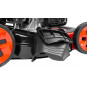Praktickým doplnkom je odkladací priestor na rukoväti na mobil a nápoj. Kosačka umožňuje vybrať si z 8 pozícií výšky kosenia v rozsahu 25 - 75 mm. Šírka záberu pri kosení dosahuje skvelých 50,8 cm. Je tiež vybavená praktickým zberným košom s objemom 60 litrov s ukazovateľom stavu naplnenia. Kosačka pracuje rýchlosťou až 3600 otáčok/min. Stabilný a pevný oceľový skelet je opatrený otvorom pre bočné vyhadzovanie. Vďaka tomu je možné kosiť i ľahko prerastenú trávu, a bez toho, aby sa kosačka hltila a obsluha šliapala v pokosenej tráve. S mulčovacou záslepkou trávu pokosíte na malé kúsky, ktoré následne v tráve plnia funkciu hnojenia. Ručné štartovanie. Motor je vybavený sytičom pre studený štart. Kosačka disponuje sklopnou rukoväťou, takže výrazne šetrí priestor pri uskladnení. Jednoduchá obsluha.