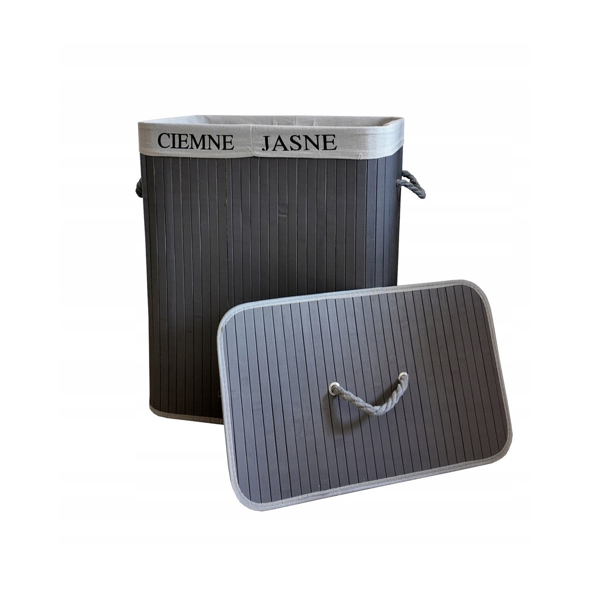 Bambusový 100l kôš na prádlo s vrchnákom v sivej farbe